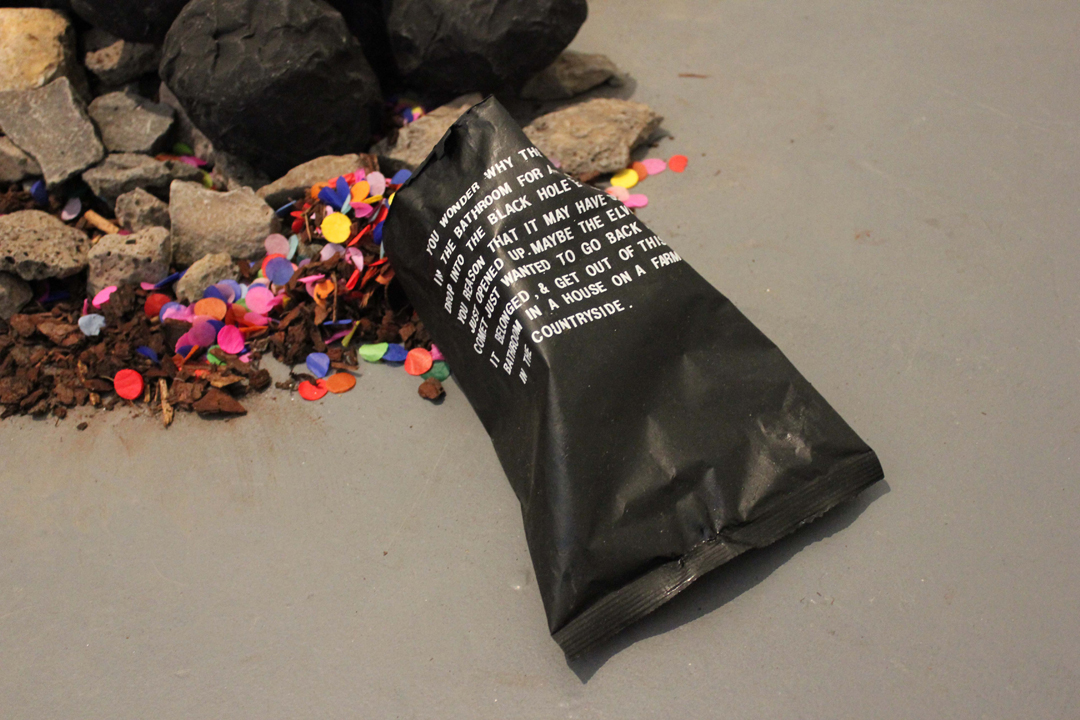 A meteor signed by Elvis lands in a country field. A black hole opens up in a bathroom sink. An avalanche of real and fake rocks, confetti, glitter and rubbish unfolds like the vomit of the gods. Signs Point To Yes is about gravity, levity, stuff that’s almost possible, and wandering around the borders of reason like a bigfoot in a backyard.