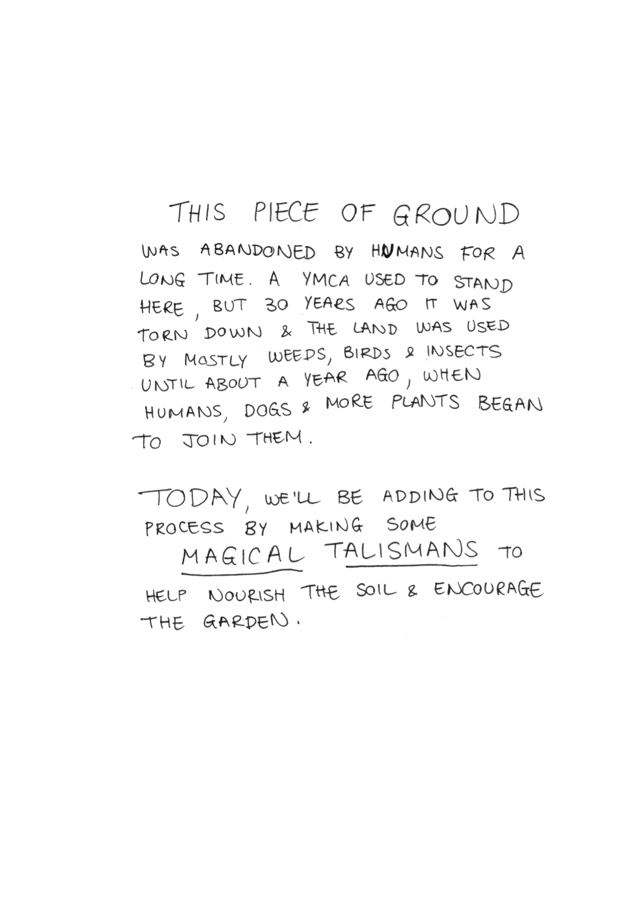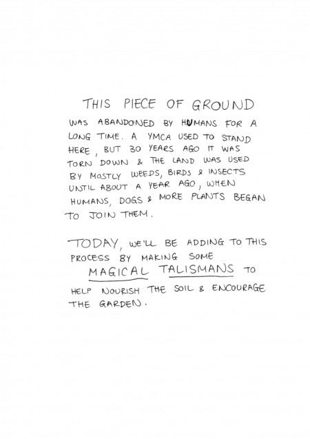 A small book made to accompany the Garden Encouragement Day project, held at Testing Grounds in 2014, in which participants made magical talismans to nourish the surrounding land. Each participant received a copy.