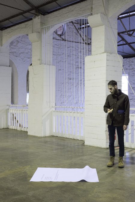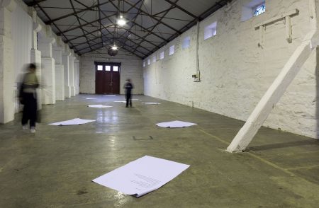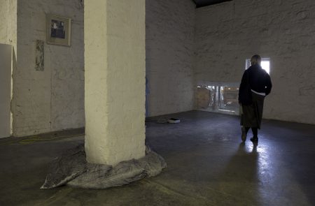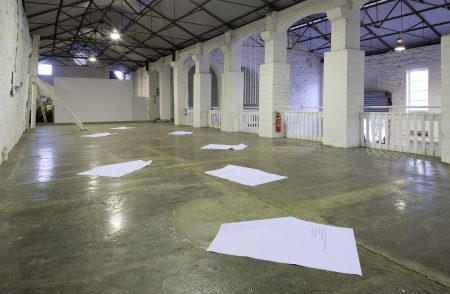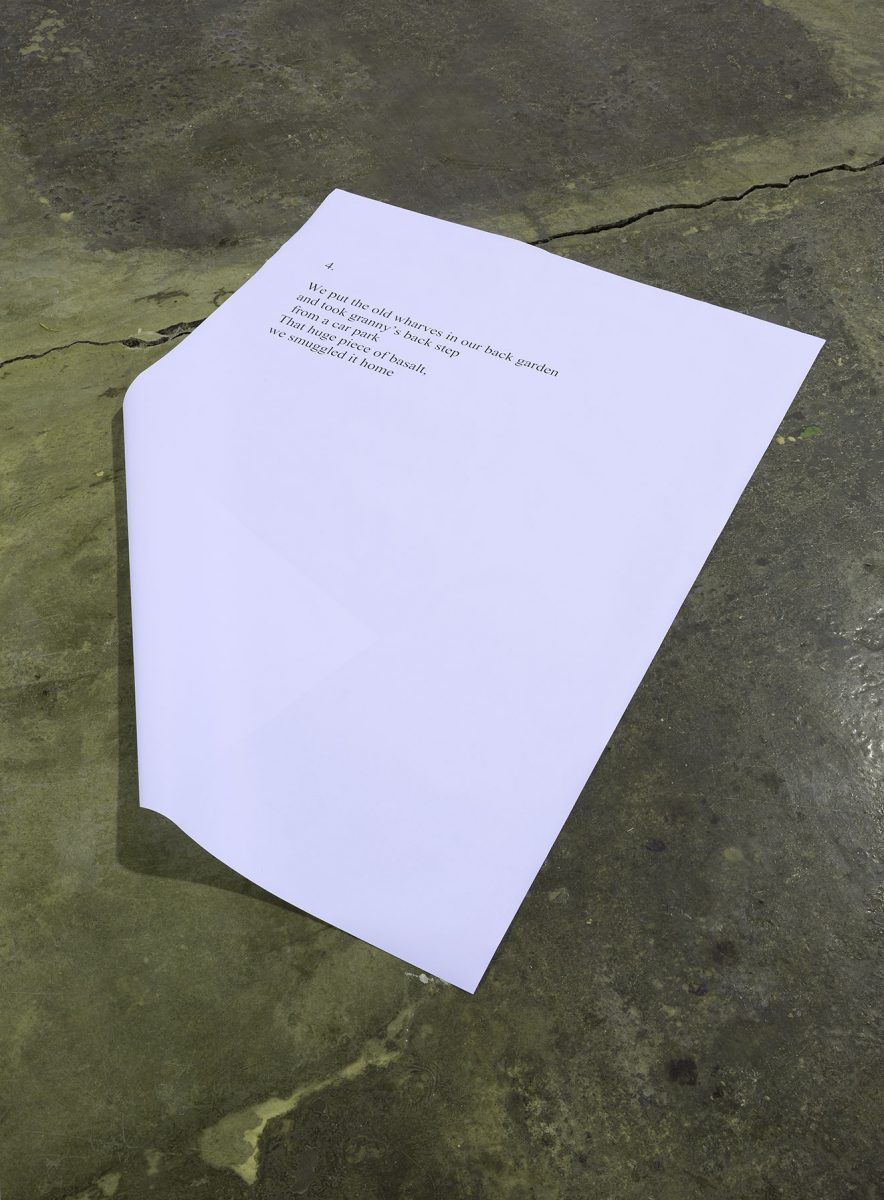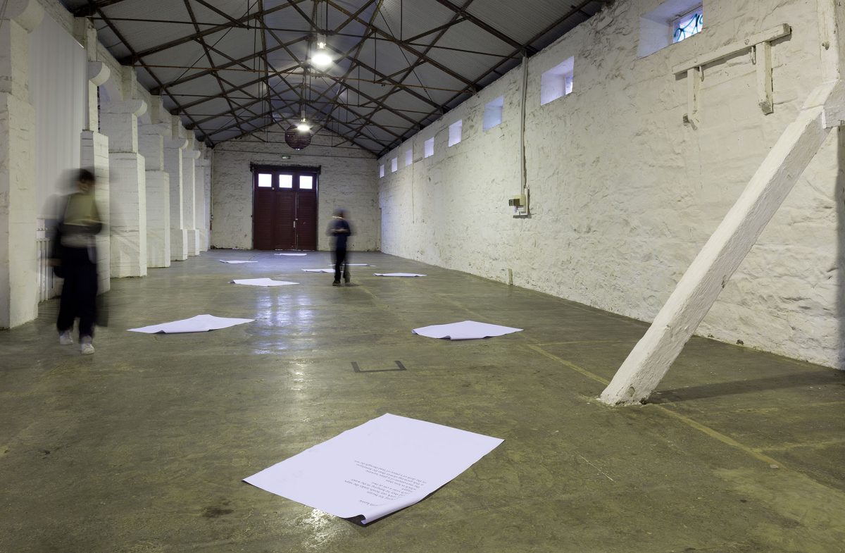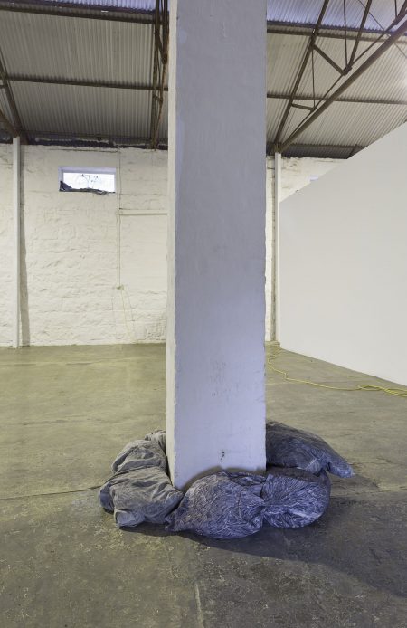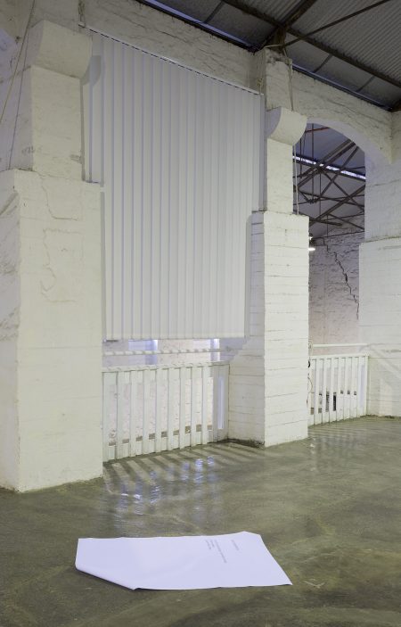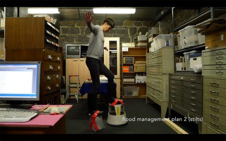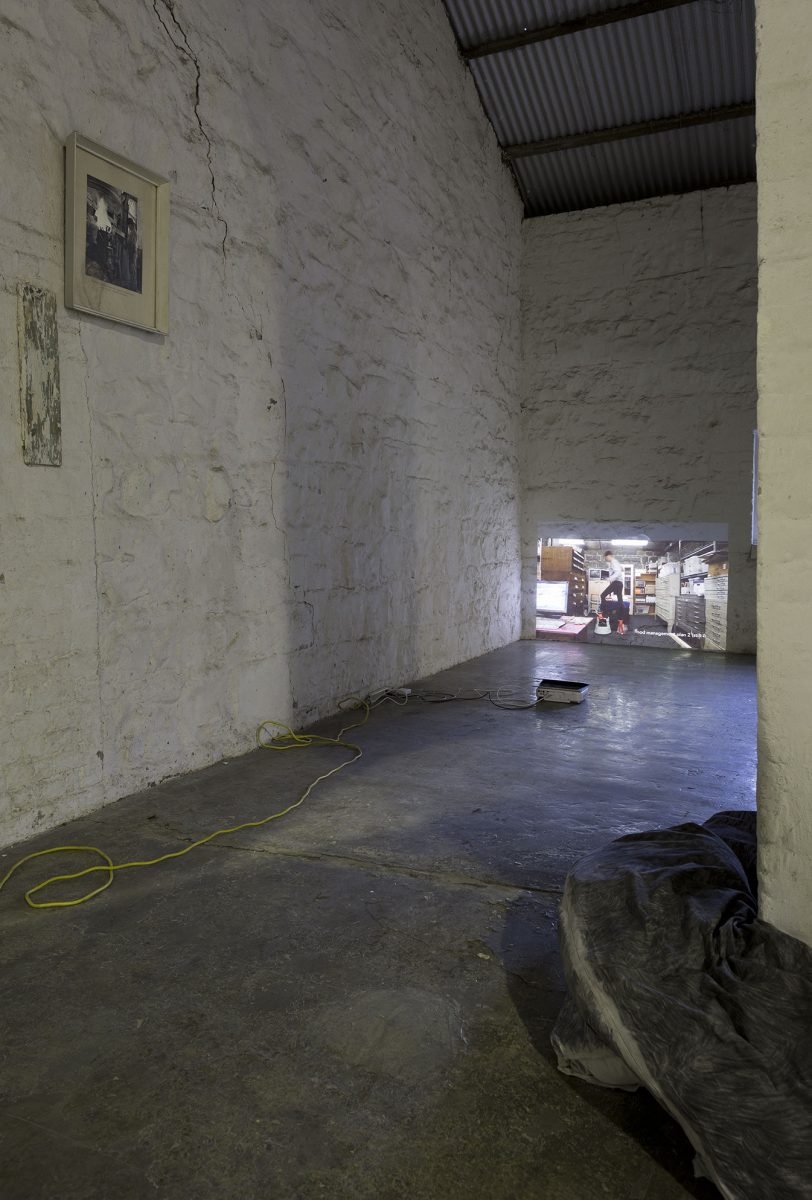 Year of the Floods. Poems, video, sand bags, curtain in response to the Living Museum of the West. With Georgina Criddle, Living Museum of the West bluestone building. Image credit Christian Capurro (2017).